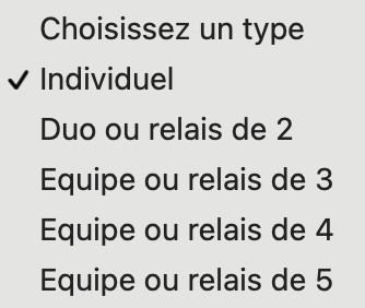 Le fait de choisir un type "relais / équipe" au lieu d'individuel, ajoutera la mention "N équipiers" sur le bloc de l'épreuve concernée et obligera la personne qui fait l'inscription à inscrire autant de personnes que nécessaire pour compléter l'équipe.