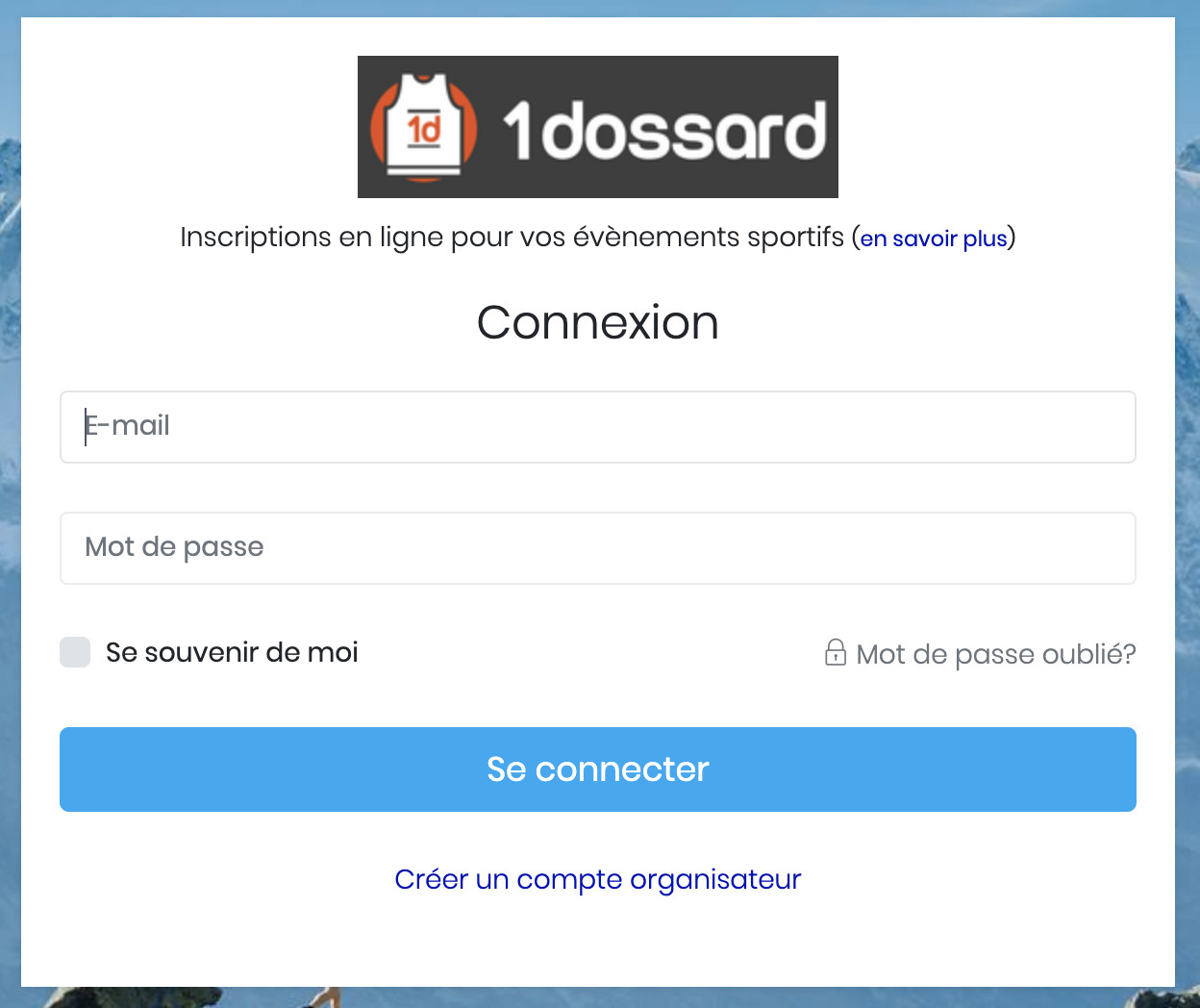 Pour commencer, vous pouvez vous créer un compte organisateur sur cette page ou si c'est déjà fait, vous connecter sur cette page.