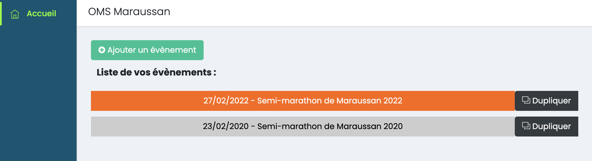 - Dupliquer un évènement afin de gagner du temps dans la création d'un nouvel évènement (les distances, tarifs et différents paramètres seront dupliqués, mais pas les participants bien sûr 😉)