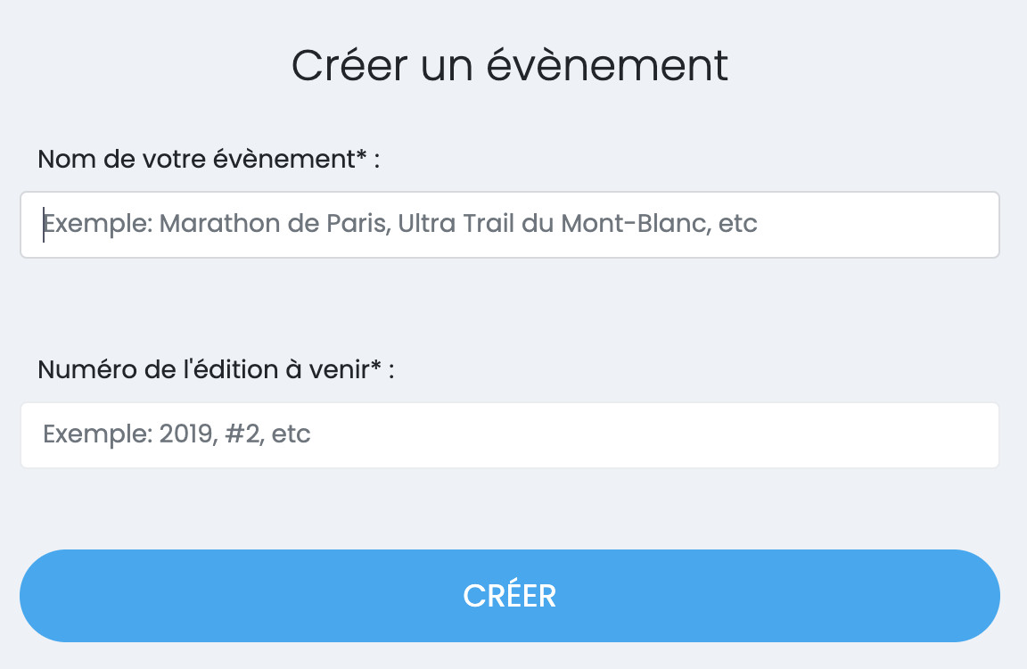 - cela vous amènera sur la page ci-dessous, vous demandant de saisir le nom et le numéro d'édition (année le plus souvent) de l'évènement à créer :