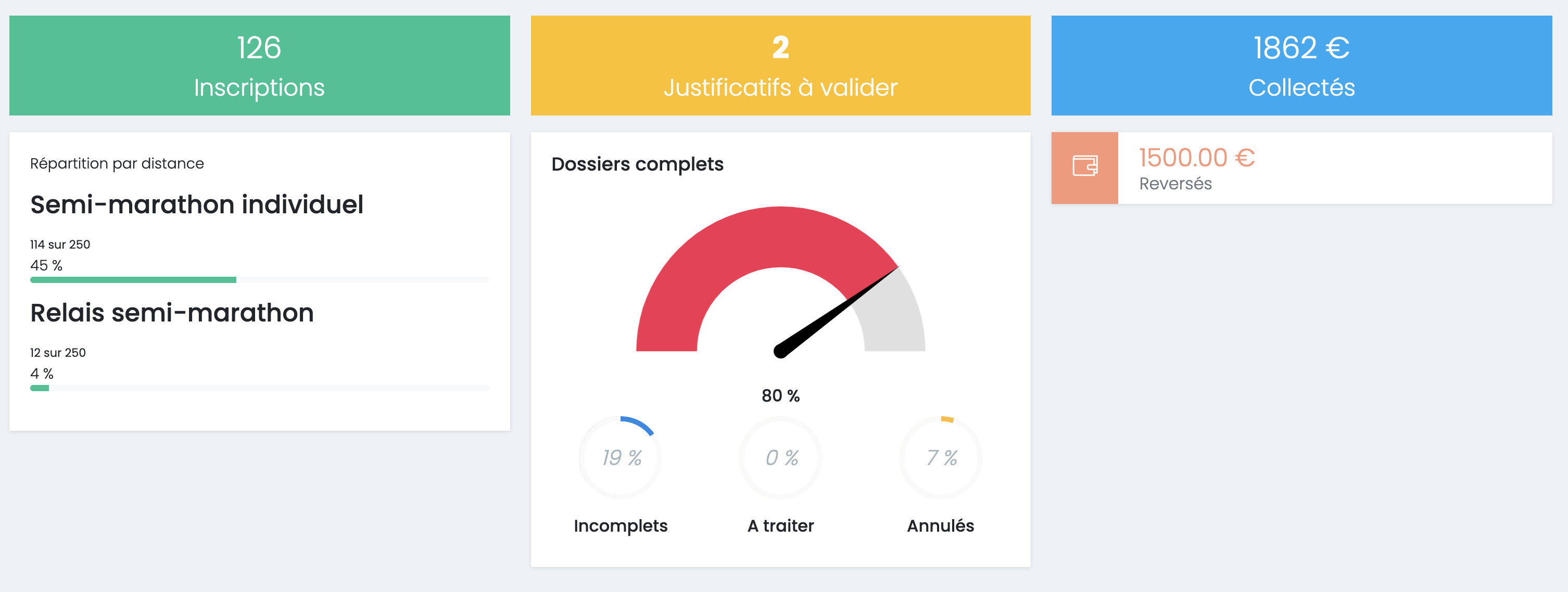 - Le nombre d'inscrits pour chacune des distances au programme de votre évènement